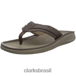 Clarks homens chinelo Clarks masculino de couro marrom ellison easy RJZRN1168 couro bronzeado