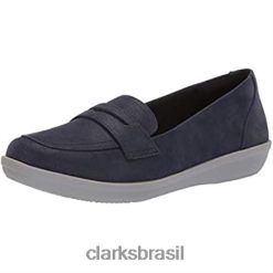 Clarks mulheres sapato clarks feminino Gracelmaze em couro azul marinho RJZRN1827 couro marinho