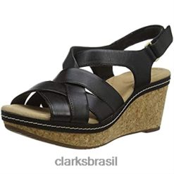 Clarks mulheres sandália feminina de salto alto Clarks Annadel Rayna em couro preto RJZRN1080