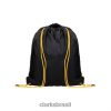 esta bolsa clássica com cordão é ideal para kits esportivos infantis. uma bolsa de ginástica prática e limpa em preto com alças de transporte amarelas contrastantes e um espaço dedicado na frente para o nome do seu filho e detalhes da aula. a solução perfeita para problemas do pe kit