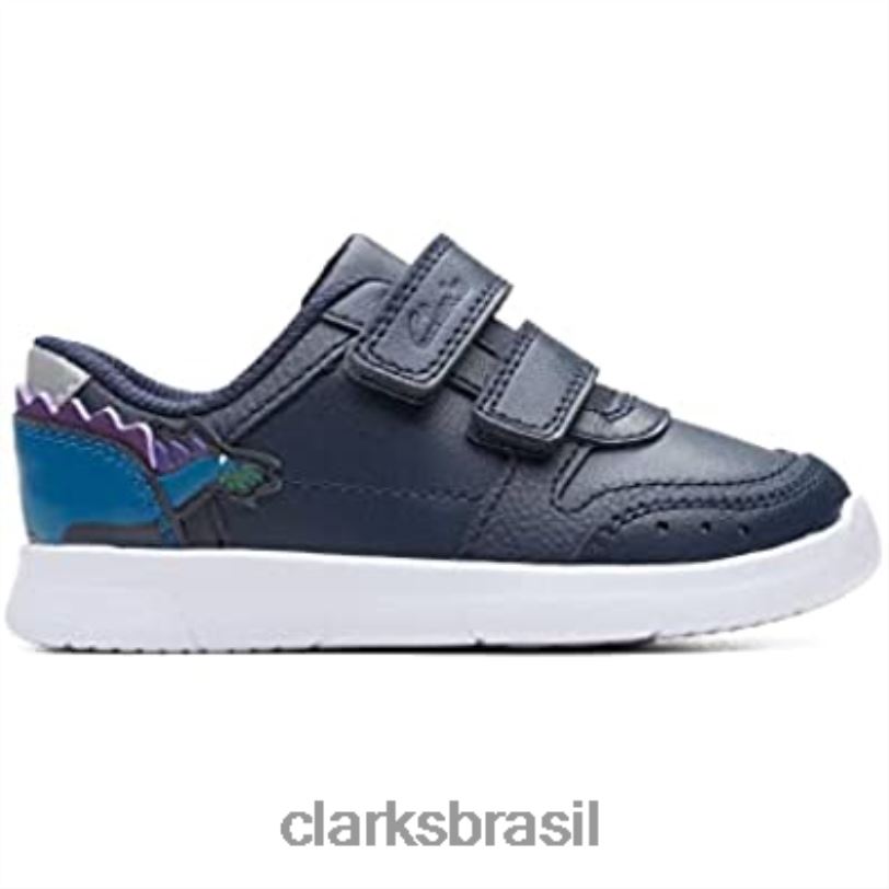 Clarks crianças clarks ath steggy sapato infantil de couro azul marinho RJZRN906