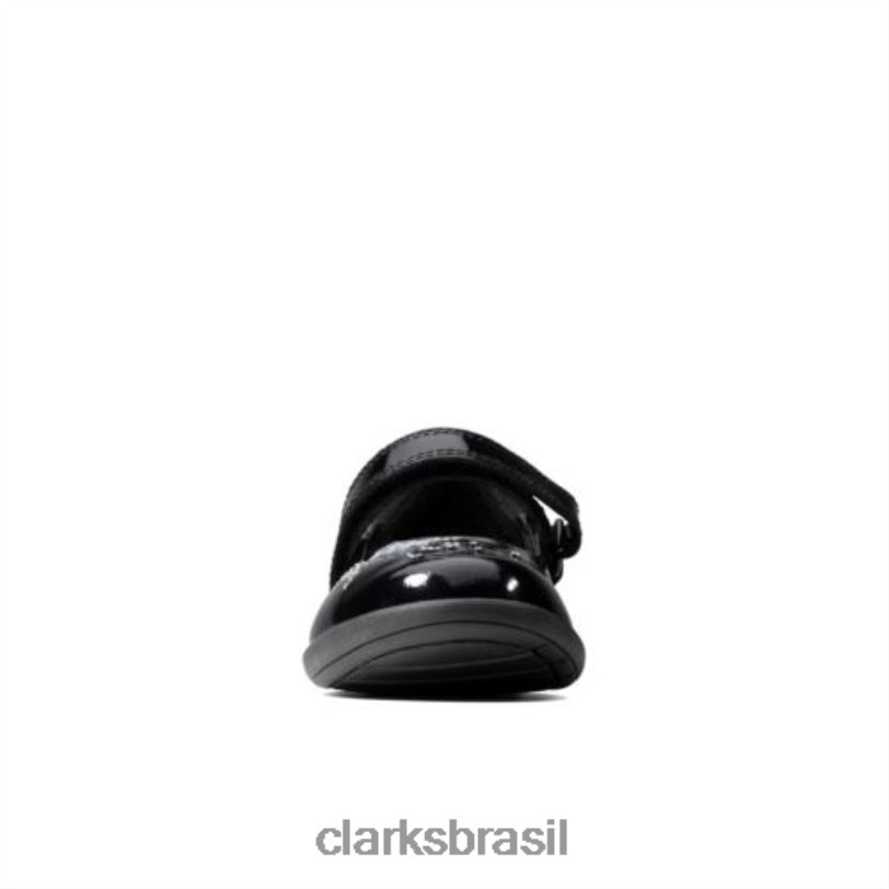 Clarks crianças clarks black patente etch faísca inf f fit RJZRN4641 patente preta