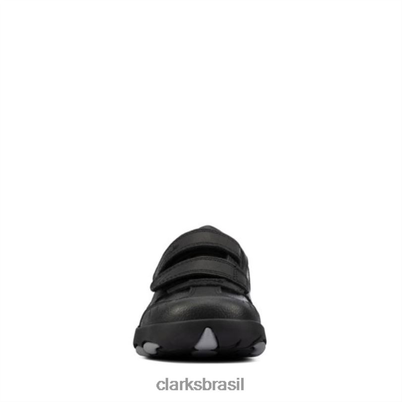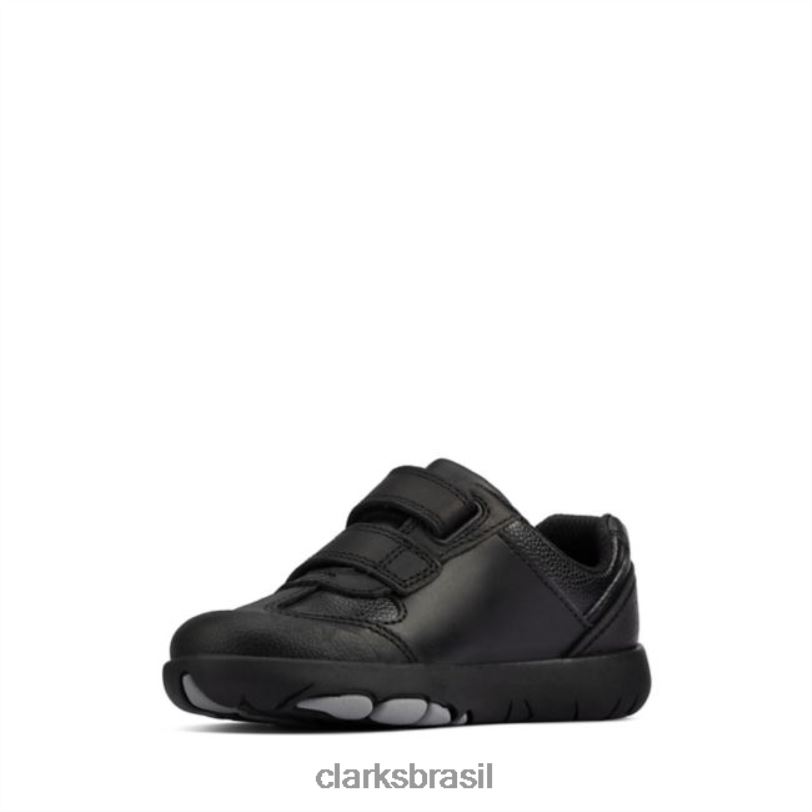 Clarks crianças Clarks de couro preto rex stride infantil de couro preto RJZRN5844 couro preto