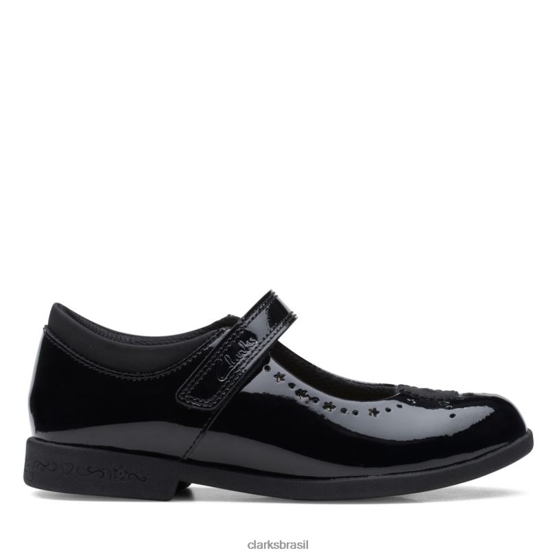 Clarks crianças clarks magic step bar patente preta mais antiga patente preta RJZRN5818 patente preta