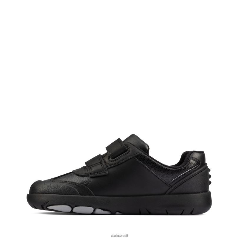Clarks crianças clarks rex stride k de couro preto RJZRN3832 couro preto