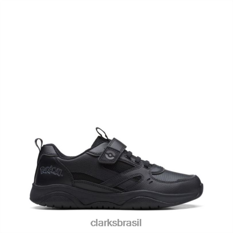 O super legal comércio de tênis escolares faz parte de nossa nova coleção de Pokémon Clarks Kids – e eles vão adorar! em couro preto protetor