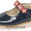 Clarks crianças Clarks Crown Petal Criança Sapatos De Couro Ceroso Azul Marinho RJZRN200