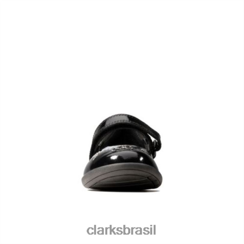Clarks crianças clarks black patente etch faísca inf f fit RJZRN4641 patente preta