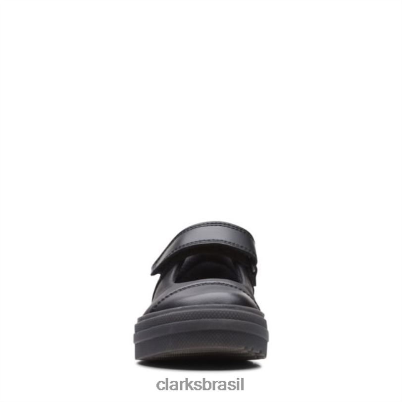 Clarks crianças flare brilho infantil couro preto clarks de couro preto RJZRN5886 couro preto