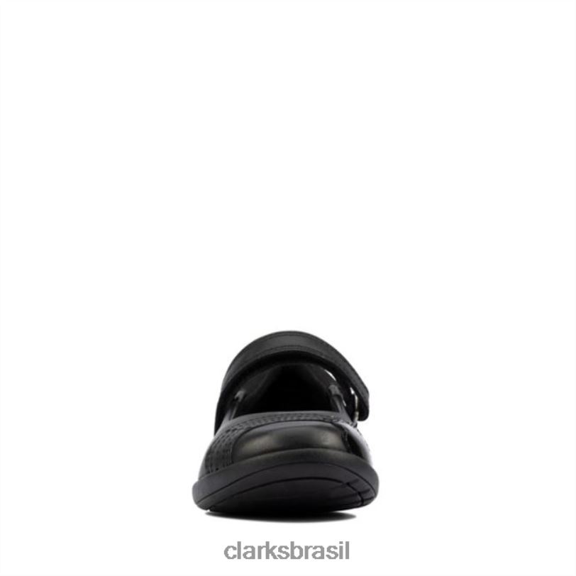 Clarks crianças gravar feixe garoto couro preto clarks couro preto RJZRN5855 couro preto