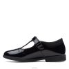 Clarks crianças preto patente loxhamshine jnr f fit clarks RJZRN4636 patente preta
