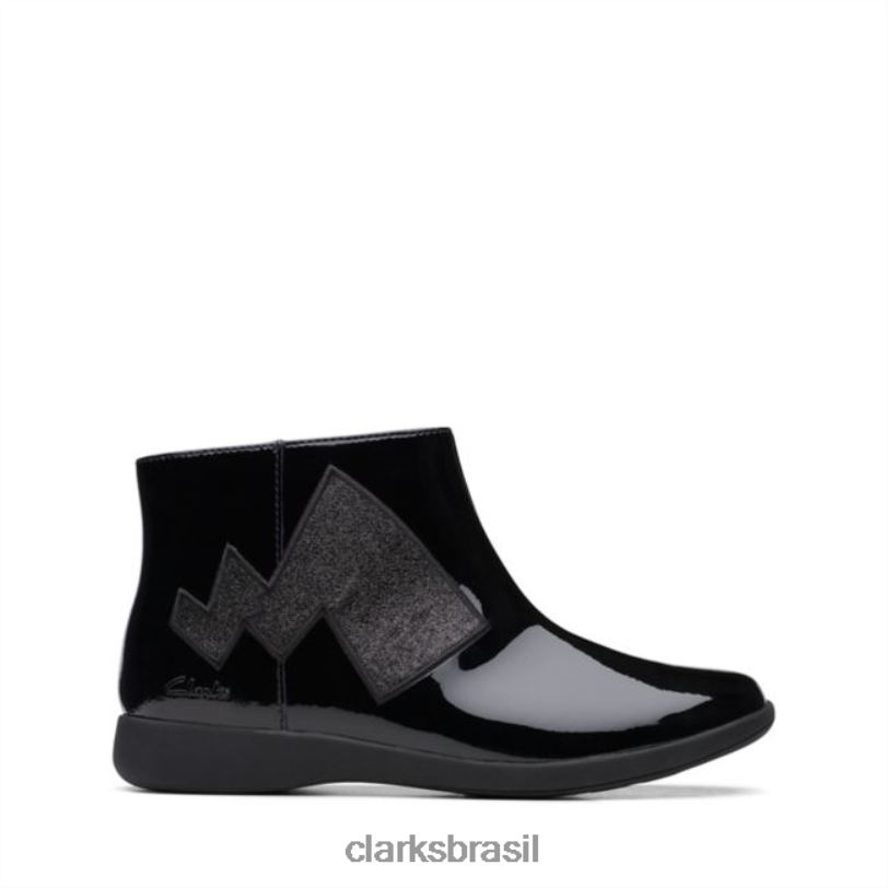 Clarks crianças patente preta clarks etch trail patente preta mais antiga RJZRN5779 patente preta