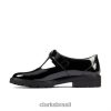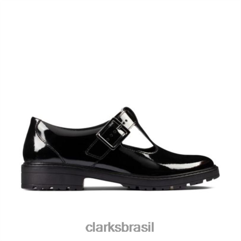 Clarks crianças preto patente loxhamshine jnr f fit clarks RJZRN4636 patente preta