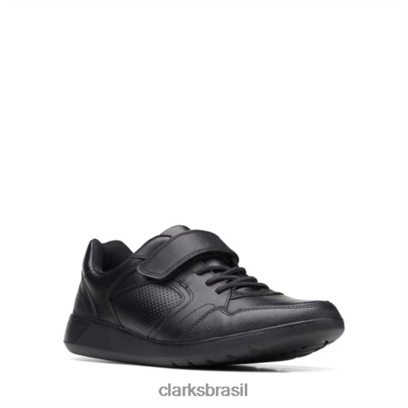 Clarks crianças scape brilhante juventude couro preto couro preto clarks RJZRN5942 couro preto