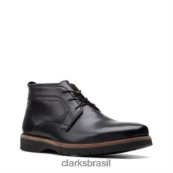 Clarks homens pulseira Clarks Cotrell de couro liso preto couro liso preto RJZRN5571 couro preto liso