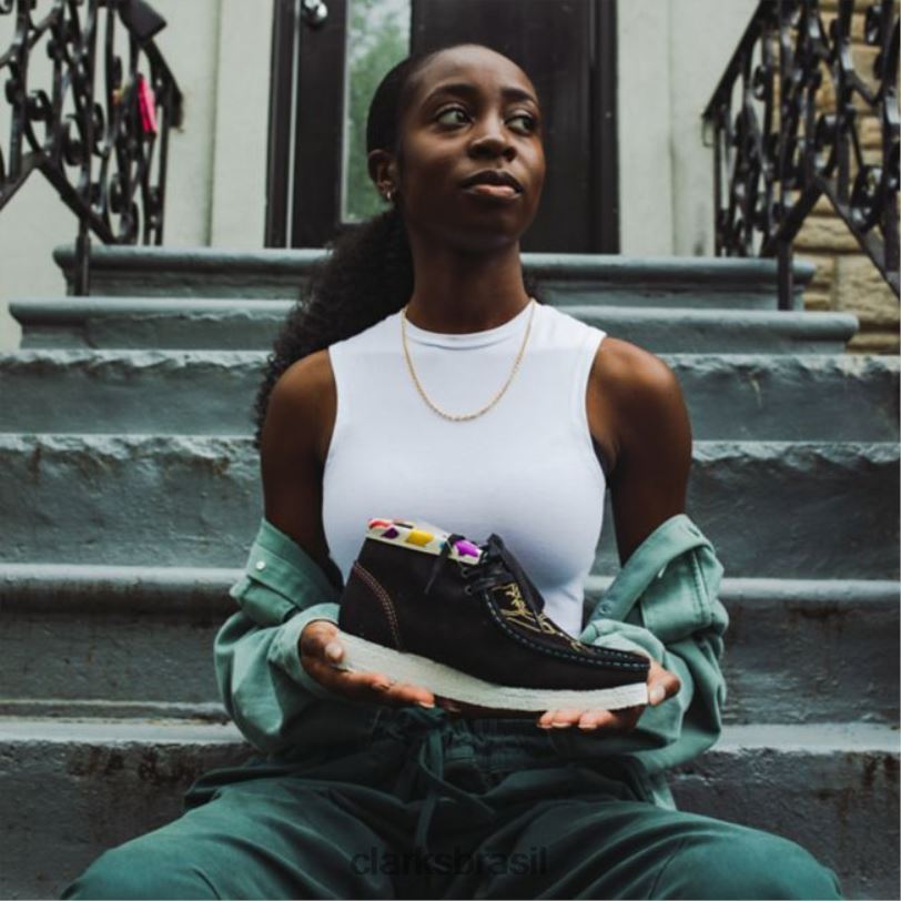 Clarks mulheres bota wallabee bordado preto clarks bordado preto RJZRN5357 bordado preto