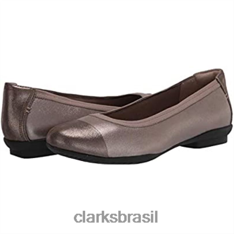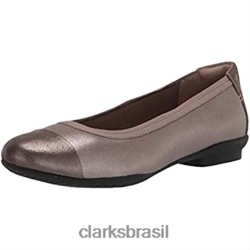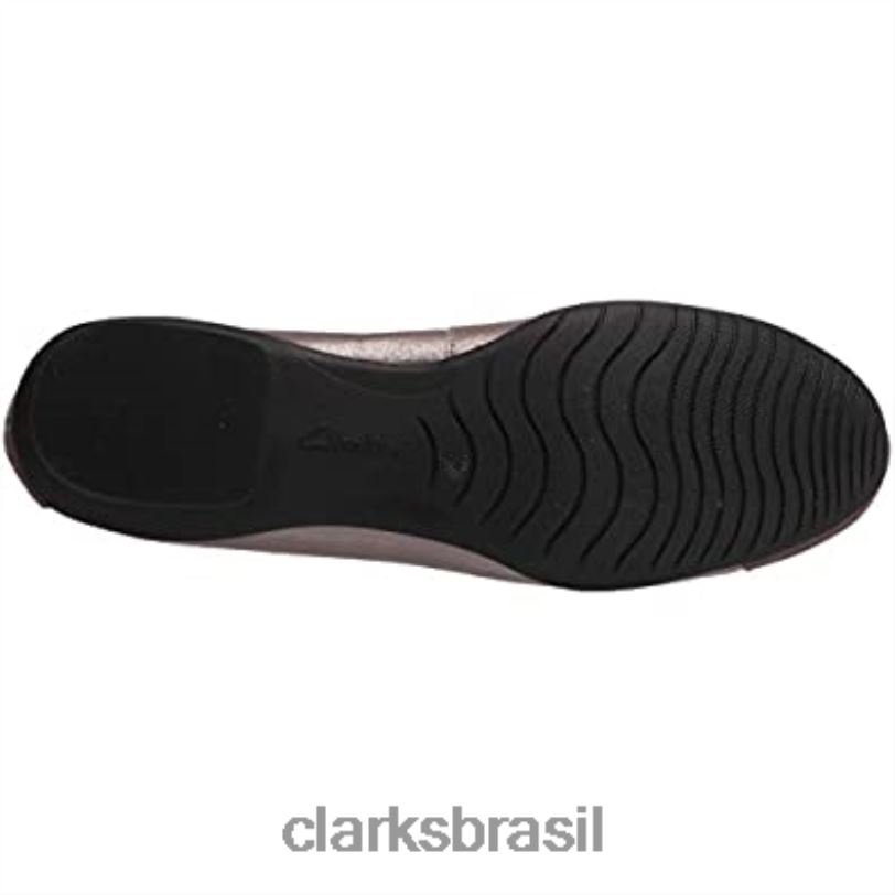Clarks mulheres Calça Clarks Feminina de Couro Metálico Sara Orchid Ballet Flat RJZRN1576