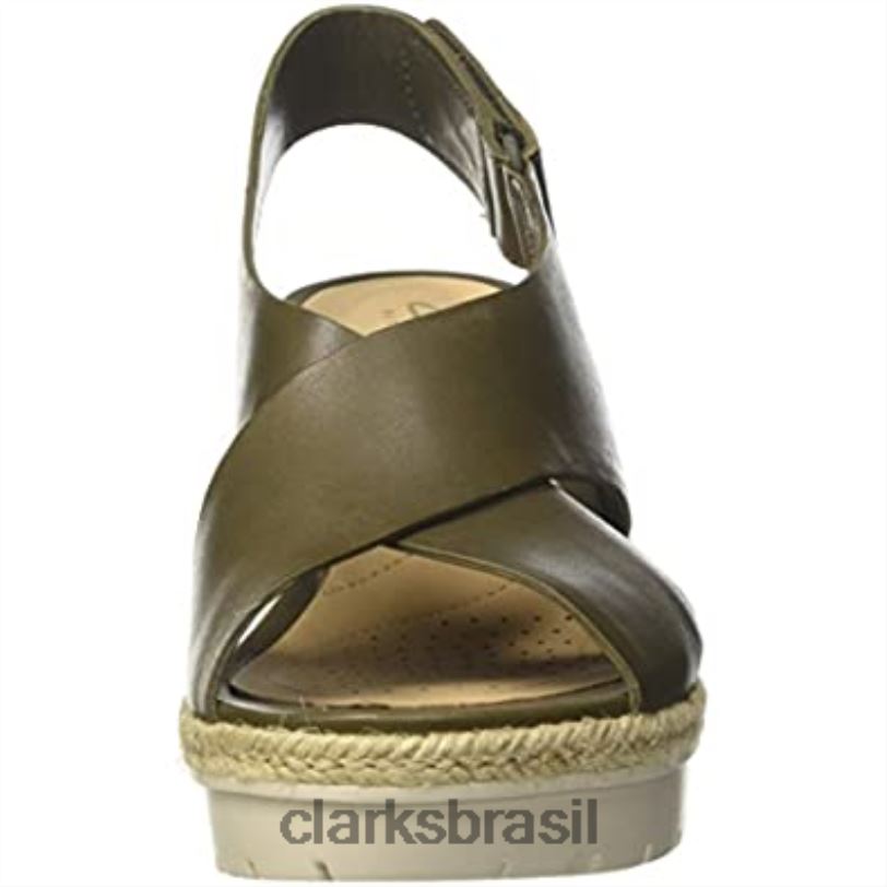 Clarks mulheres Clarks couro cáqui verde feminino palm g sandálias com tira baixa no tornozelo RJZRN2563 couro cáqui verde