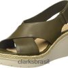 Clarks mulheres Clarks couro cáqui verde feminino palm g sandálias com tira baixa no tornozelo RJZRN2563 couro cáqui verde