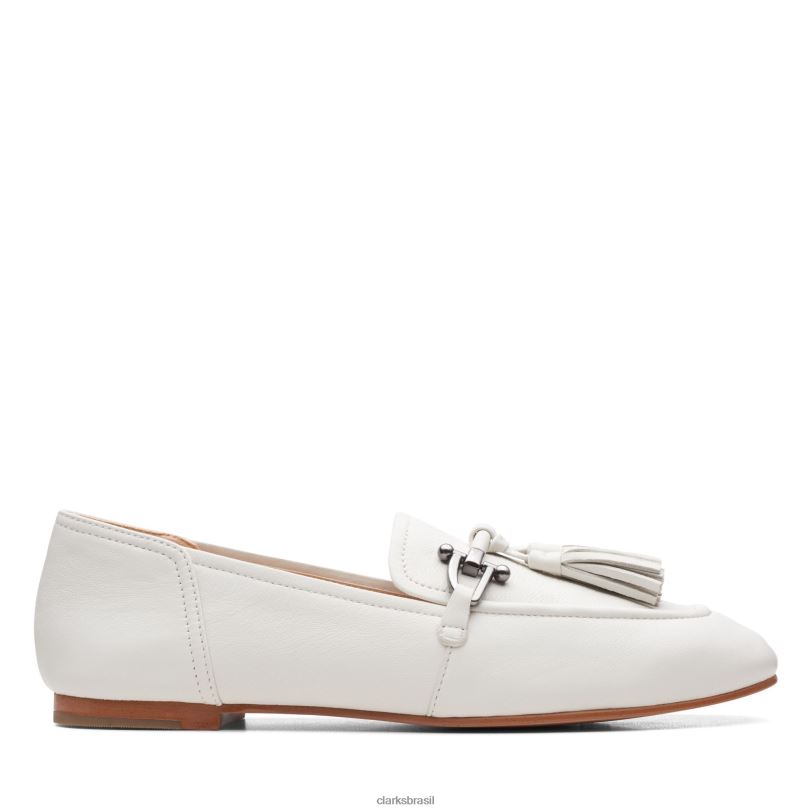 Clarks mulheres clarks de couro branco com borla pure2 RJZRN3318 couro branco