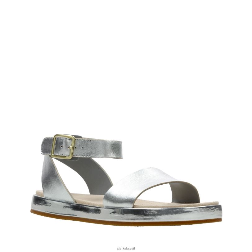 Clarks mulheres clarks de couro prateado com hera botânica RJZRN3422 couro prateado