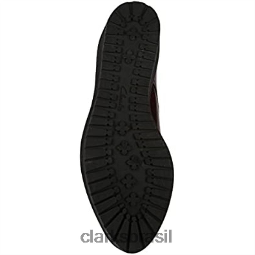 Clarks mulheres Clarks jogo de couro vermelho borgonha oval brogue feminino RJZRN2609 couro vermelho bordô