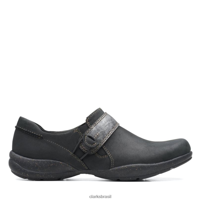 Clarks mulheres mocassim feminino estilo sashlyn preto combi clarks RJZRN2764 combinação preta