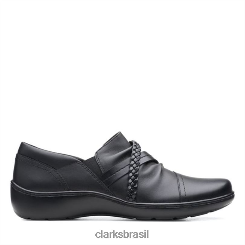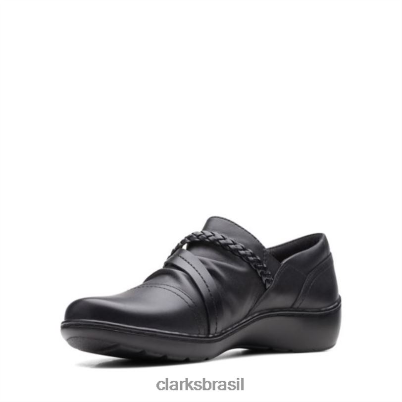 Clarks mulheres cora trançashoe couro preto clarks de couro preto RJZRN6286 couro preto