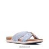 aproveite saraus de verão e dias de praia com a sandália de lona azul fresca e divertida Eliza Shore. pés ficam leves como uma nuvem o dia todo
