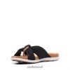 aproveite saraus de verão e dias de praia com a sandália de lona preta fresca e divertida Eliza Shore. pés ficam leves como uma nuvem o dia todo