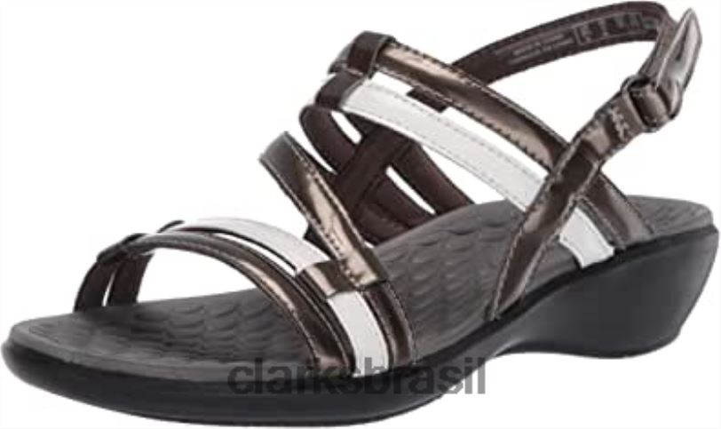 Clarks mulheres estanho metálico branco sintético feminino sonar pioneirosonar pioneiro sandália clarks RJZRN1724 estanho metálico branco sintético
