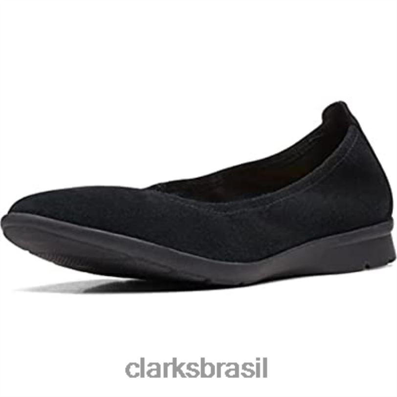 Clarks mulheres Jenette Easy Ballet Flat Clarks Feminino Camurça Preta RJZRN7