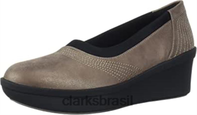Clarks mulheres plataforma feminina step rose sky clarks estanho têxtil RJZRN2573 têxtil de estanho