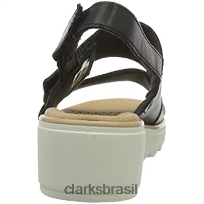 Clarks mulheres sandália feminina jillian pérola com cunha clarks preta RJZRN1055 couro preto
