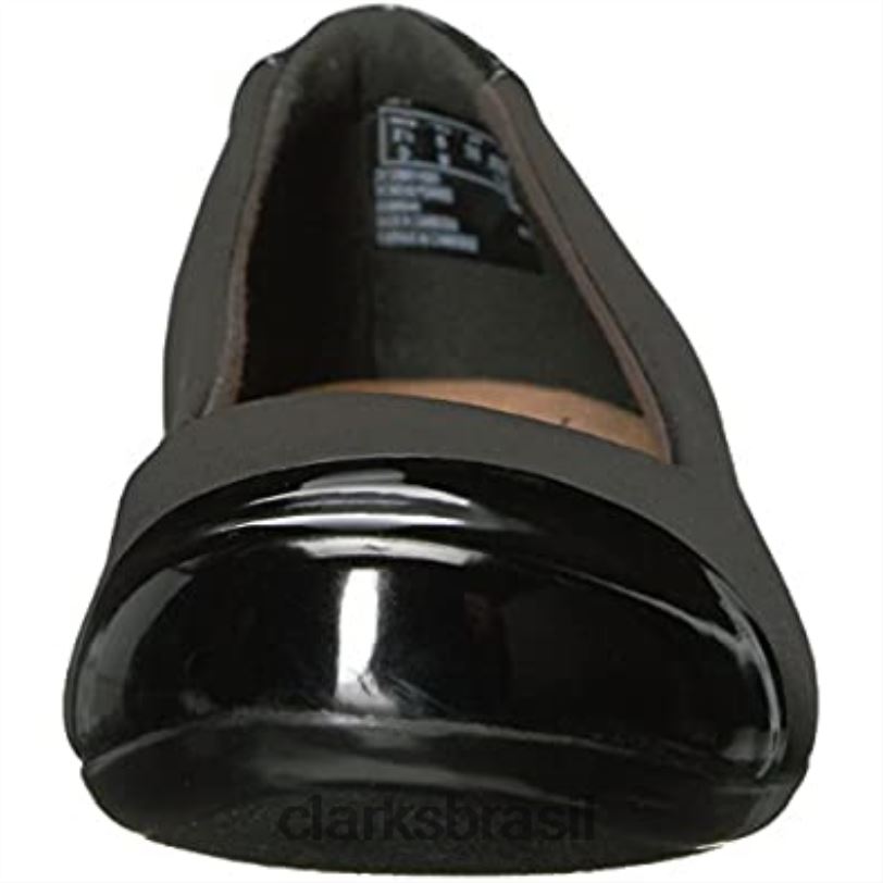 Clarks mulheres sapatilhas femininas de alta costura flor pretas clarks RJZRN86 patente preta