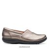 Clarks mulheres Jenette Easy Ballet Flat Clarks Estanho Metálico Camurça Feminina RJZRN53