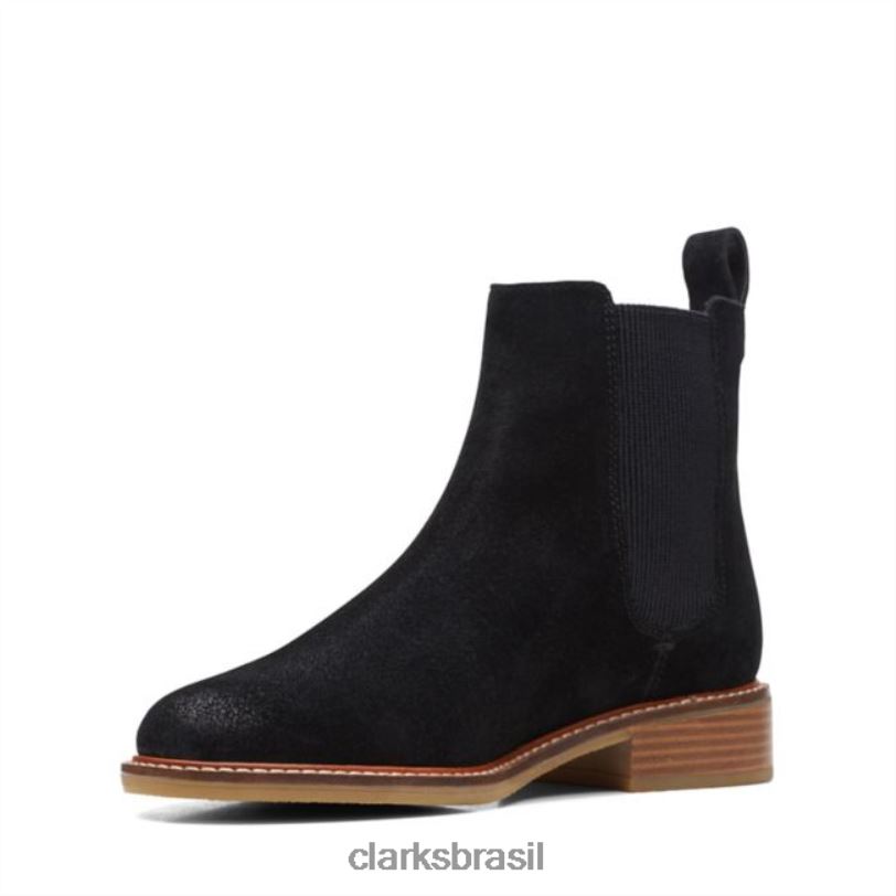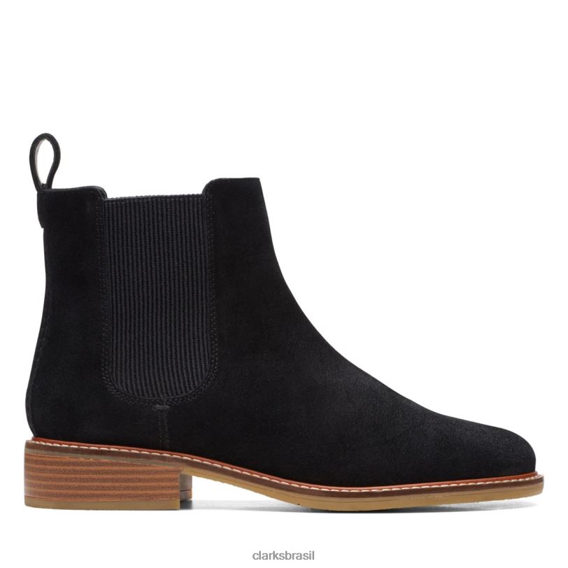 Clarks mulheres bota feminina clarks camurça preta hazen charm fashion RJZRN1835 Camurça preta