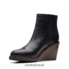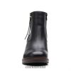 esta bota contemporânea combina uma parte superior em couro preto com um salto leve de 7,5 cm. o zíper externo com borla longa adiciona um toque final elegante