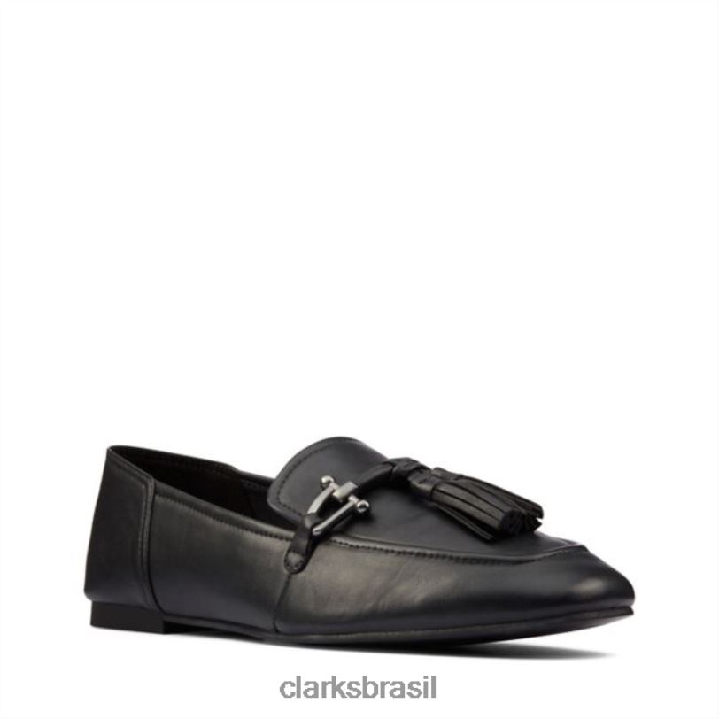 Clarks unissex Clarks couro preto puro 2 borla couro preto RJZRN6465 couro preto