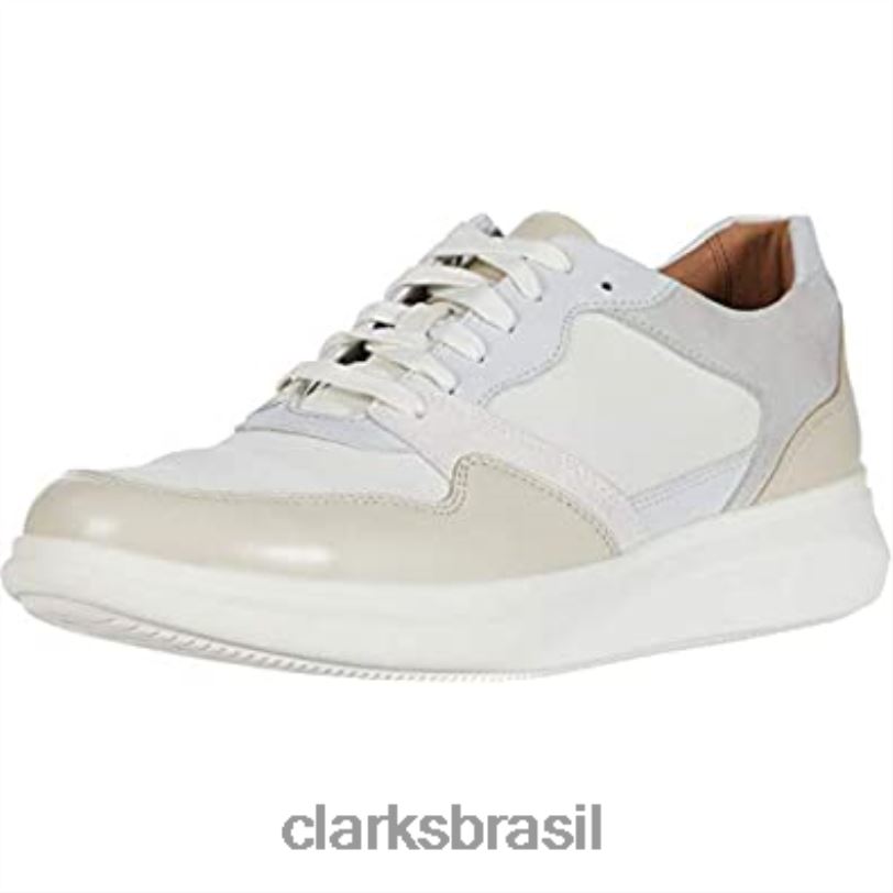 Clarks unissex Clarks Un Globe Run Branco/Couro Stone/Text Combi White Stone Leather Text Combi RJZRN706 combinação de texto de couro de pedra branca