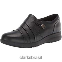 Clarks mulheres Juliet Lora Mocassins femininos Clarks pretos RJZRN135 couro preto couro preto