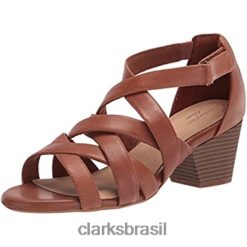 Clarks mulheres sandália feminina de couro marrom roseville cove clarks RJZRN1588 couro bronzeado