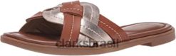 Clarks mulheres sandália feminina reyna weave clarks tan couro metálico combi RJZRN423 couro bege metálico combi