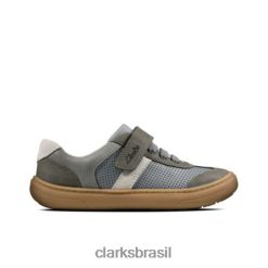 Clarks unissex clarks flash step inf g fit couro combi cinza RJZRN4978 couro combinado cinza