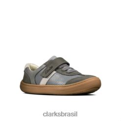 Clarks unissex clarks flash step inf g fit couro combi cinza RJZRN4978 couro combinado cinza