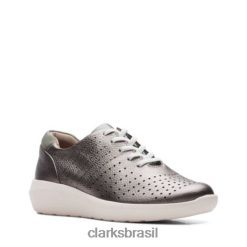 Clarks mulheres estanho couro clarks feminino kinzie light flat RJZRN2843 couro de estanho