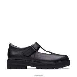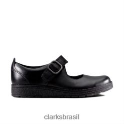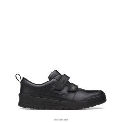 Clarks crianças pulseira de couro preto fulvo clarks de couro preto mais velho RJZRN5948 couro preto