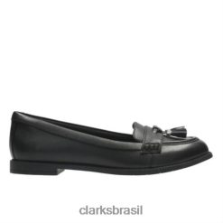 Clarks crianças praga brill juventude couro preto clarks couro preto RJZRN5813 couro preto
