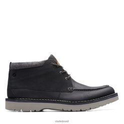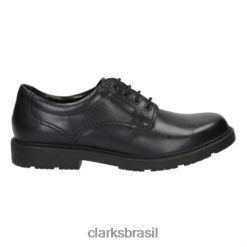 Clarks homens Clarks de couro preto com renda artesanal de couro preto RJZRN5612 couro preto