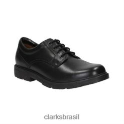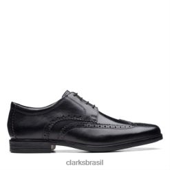 Clarks homens Clarks de couro preto com renda artesanal de couro preto RJZRN5612 couro preto